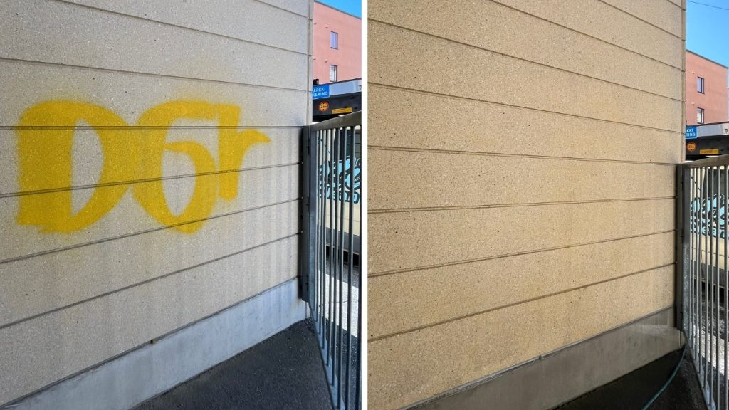Vi erbjuder professionellt klotterskydd för alla ytor i Vasa, Mustasaari, Österbotten och Södra Österbotten. Skyddsbehandling är det mest effektiva sättet att skydda sig mot vandalism: det förhindrar att färg och bläck absorberas djupt i strukturer, så att eventuella stänk kan tas bort snabbt, billigt och utan starka kemikalier.